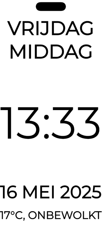 · Toont een grote, duidelijke klok met datum, tijd, dag en dagdeel (analoog of digitaal) in full-screen.