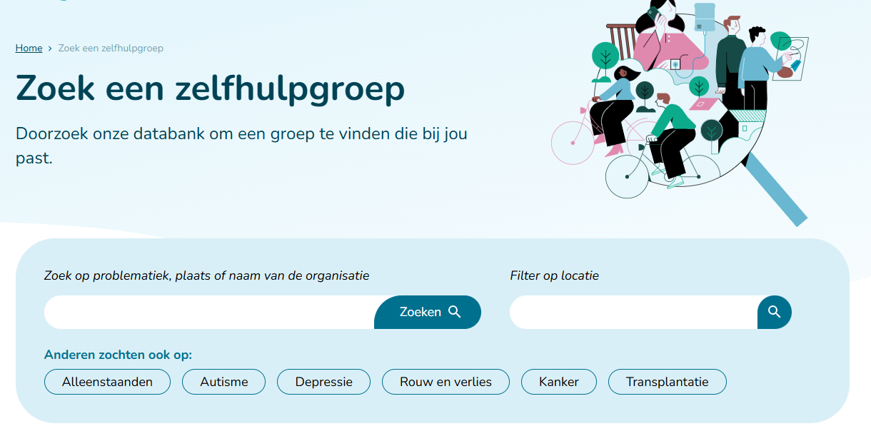 · Mensen die zelf op zoek zijn naar een zelfhulpgroep of patiëntenvereniging rond een ziekte, beperking, psychische kwetsbaarheid of andere levensuitdaging.